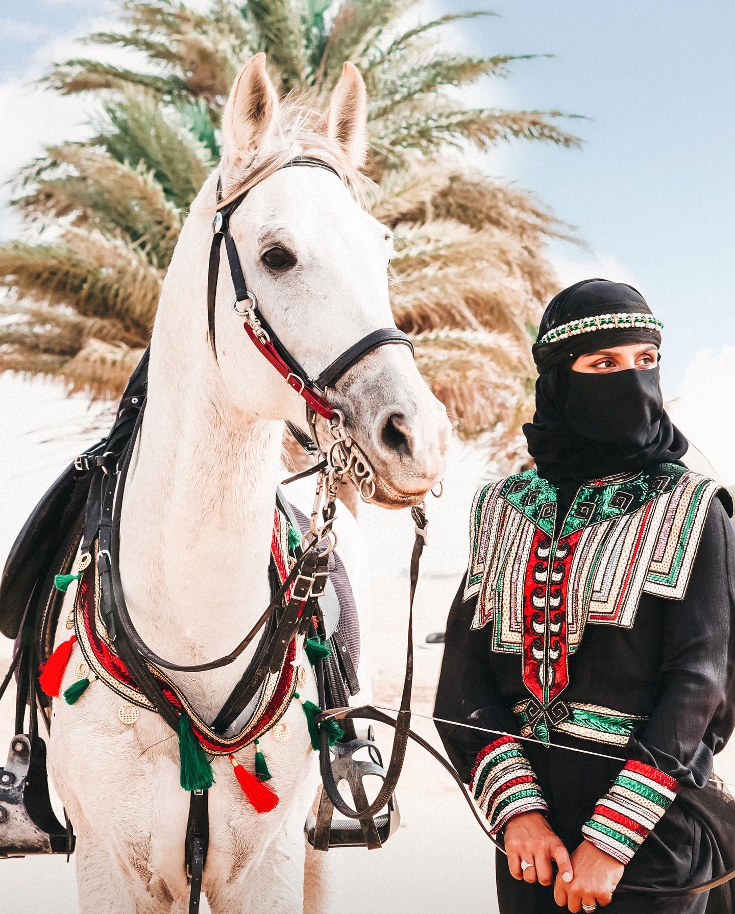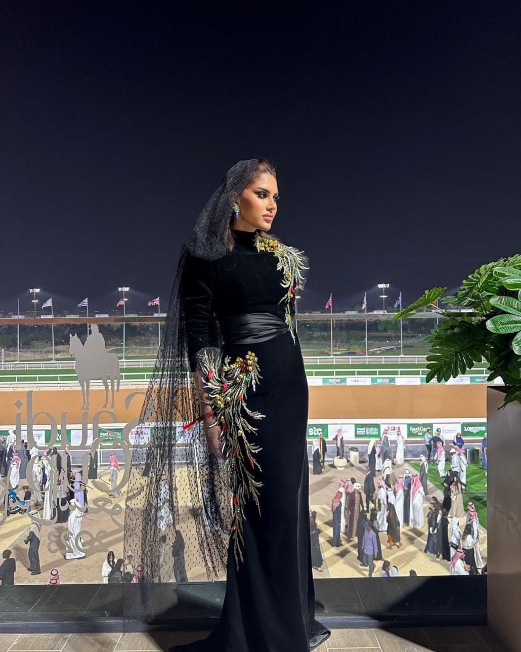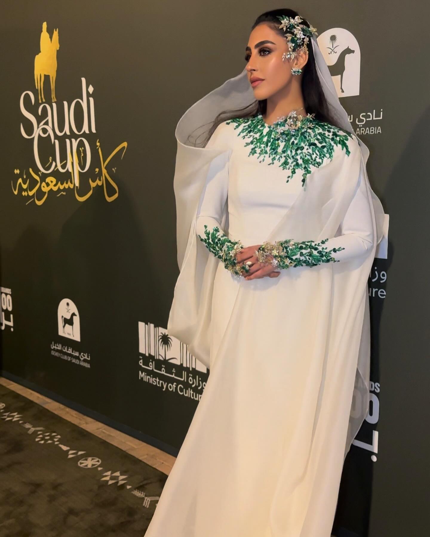 byrawanhussain The first day of Saudi Cup attendees in a dress from Adnan Akbar Fashion House, which is the first hot lot house in Saudi Arabia, the designer Adwa Akbar expressed through the design about her Saudi Green Initiative 🌿