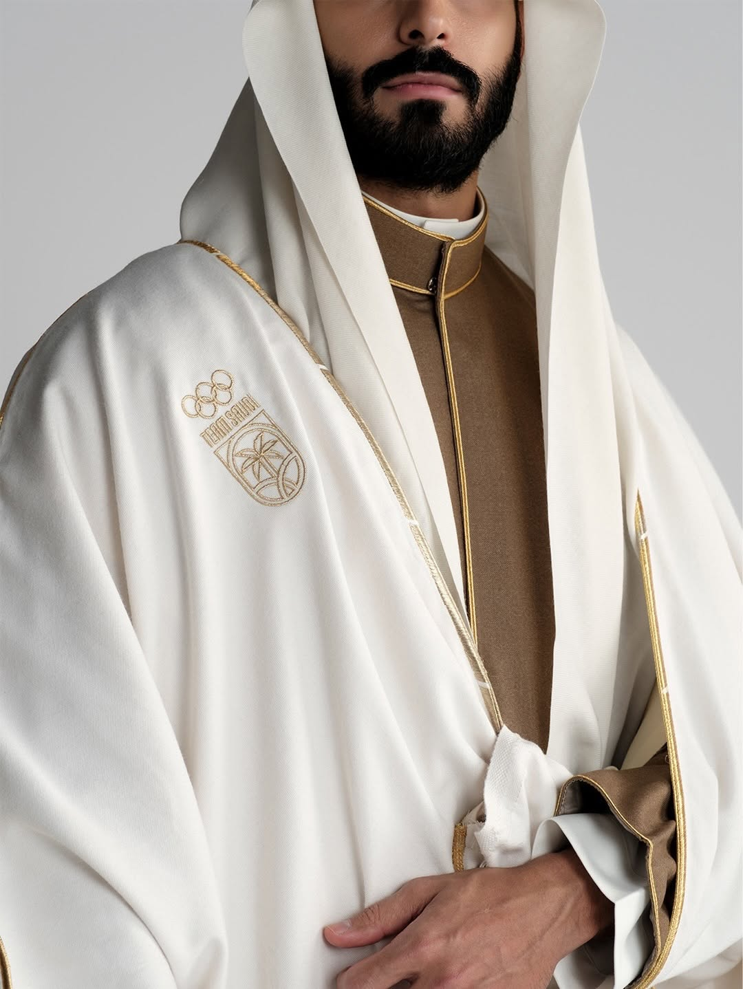 While the garment honored traditional Saudi dress codes such as modest cuts, structured lines, and heritage references, the integration of Team Saudi and Olympic logos added contemporary athletic symbolism. This careful balance achieved three strategic outcomes: