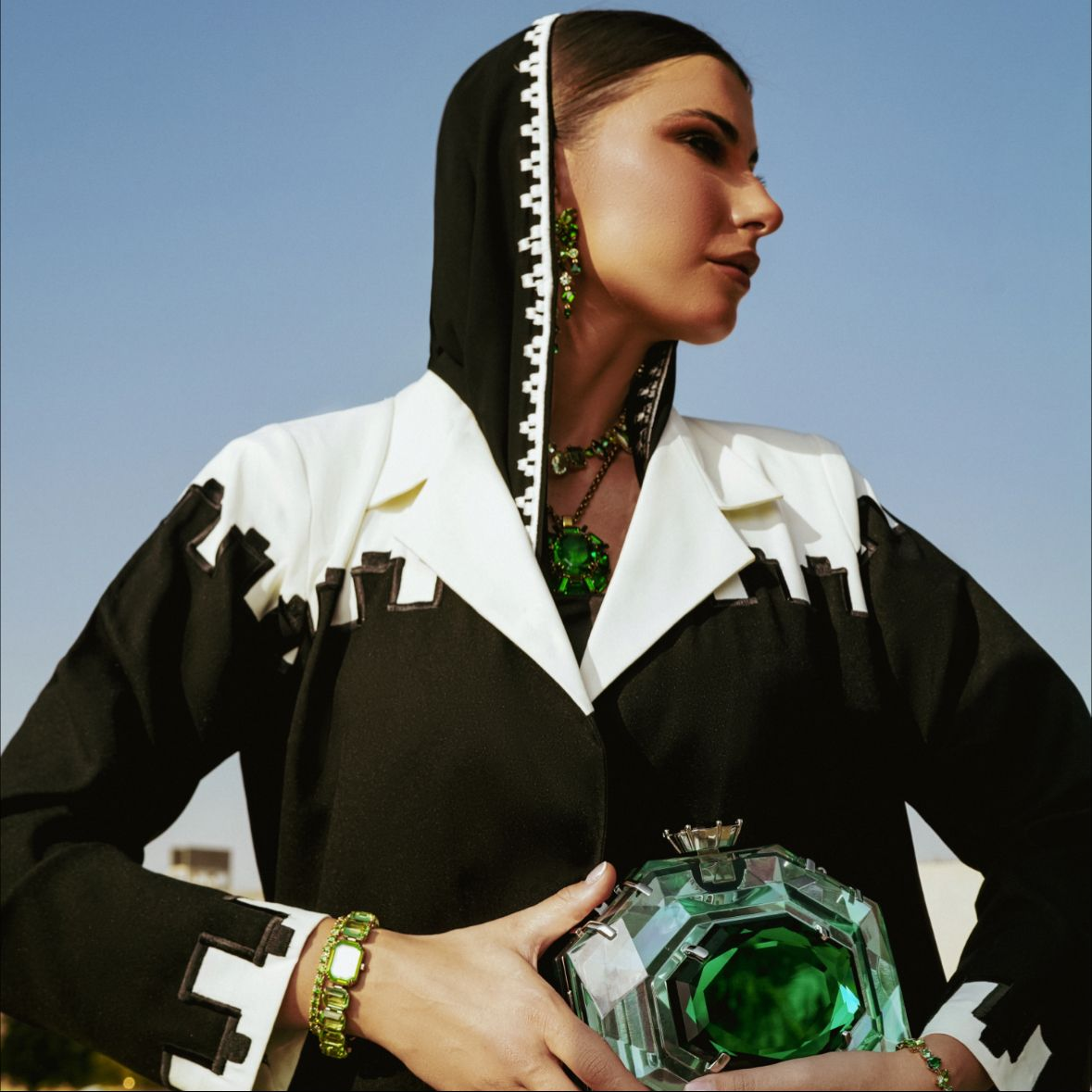 A defining milestone arrived when ASL LINE entered a collaboration orbit with Swarovski, a moment that merged global luxury codes with Saudi Arabia's cultural identity. The Saudi National Day collaboration carried a particular kind of glow: heritage translated through sparkle, symbolism carried through craft.
