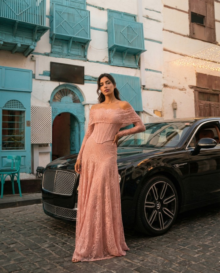 - Unique angles such as looking back, leaning on the car, sitting inside the car, or fabric-in-motion action shots