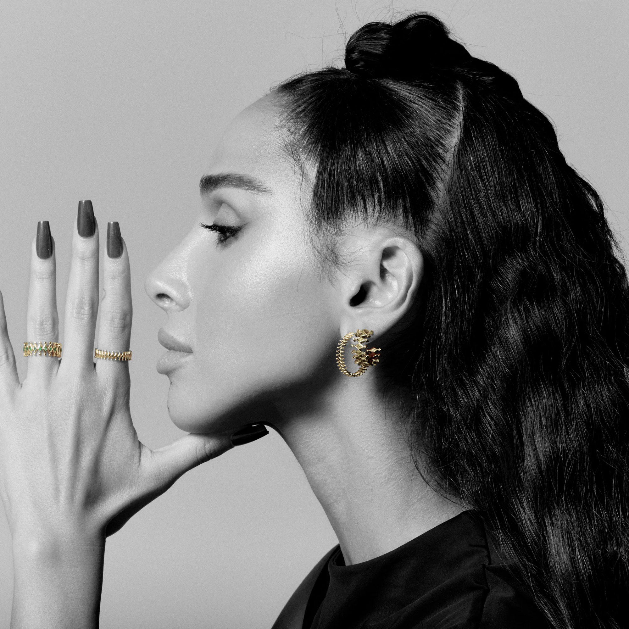 Before gold, there was structure. Hala Alasmari studied Architectural Design in Los Angeles, then trained in jewellery design at the International Gemological Institute (IGI), a background that shows in the way her pieces feel measured, deliberate, and beautifully spare in their use of proportion and negative space.