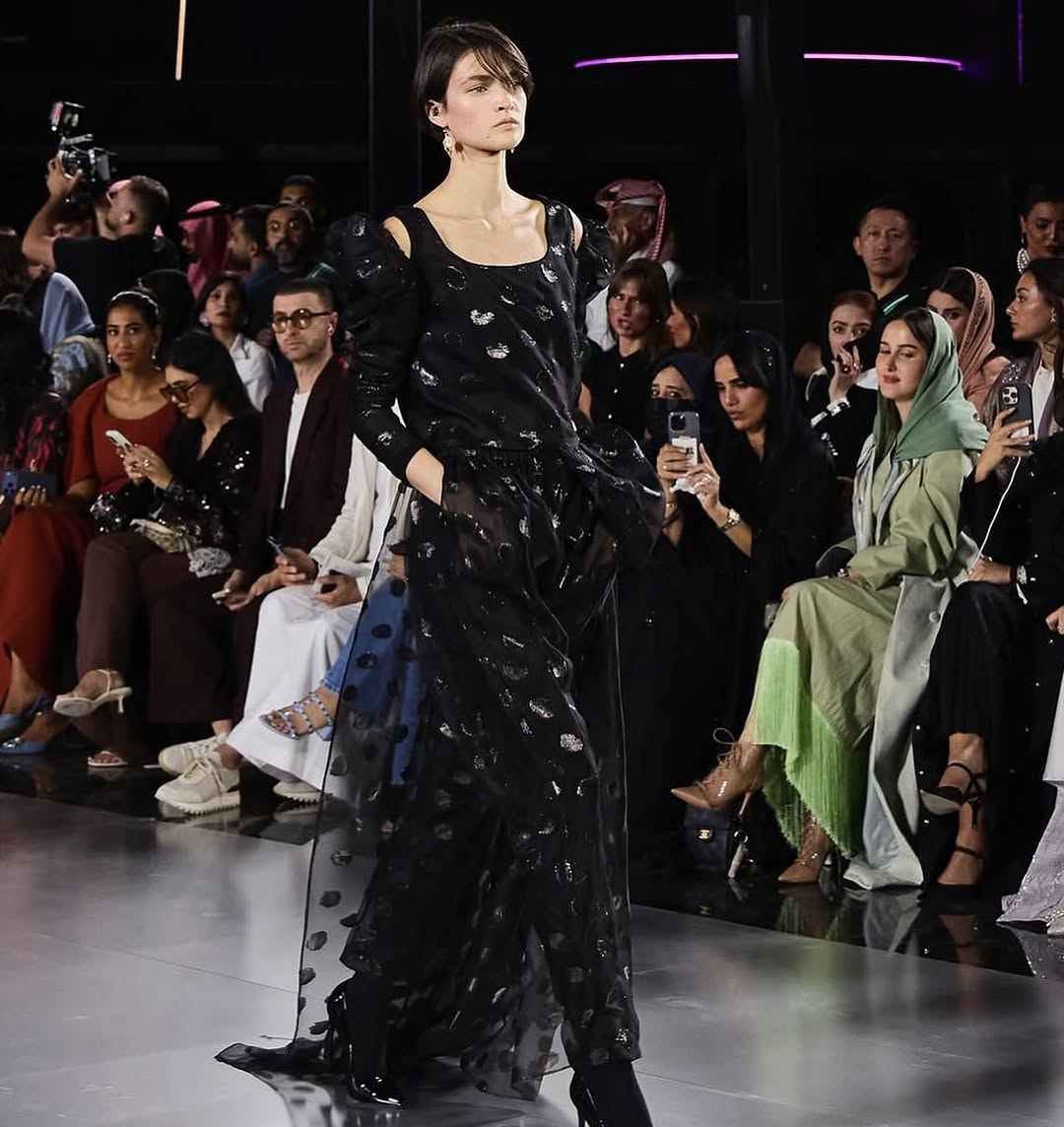 As the Kingdom’s fashion ecosystem globalizes, AlKanhal’s work has been positioned in front of international buyers through state platforms such as Saudi 100 Brands showcases in Paris, evidence of a designer as comfortable in Riyadh’s cultural surge as she is on the Seine. Her runway presence and imagery throughout fall 2025 further cemented a Saudi luxury vocabulary: minimal, assured, export-ready.