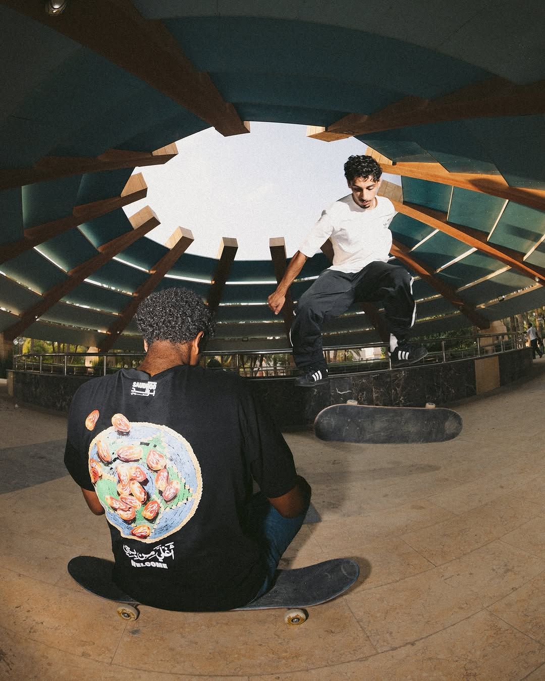 In 2025, Not Boring stepped into a high-visibility collaboration with adidas for Saudi National Day, releasing eight limited-edition T-shirt designs that blend sportswear energy with Arabic calligraphy, contemporary graphics, and nods to Saudi landmarks and heritage. The significance isn’t just the partnership, but the message: Saudi streetwear doesn’t need to imitate global brands to be global. It can collaborate on equal footing, with its own visual language intact.